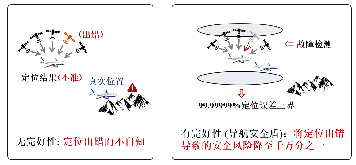 • 导航系统完好性监测。研究面向民航、eVTOL、自动驾驶等生命安全应用的导航系统故障检测与排除技术和可信度量化理论,旨在提供高精度高可信的导航定位服务。
