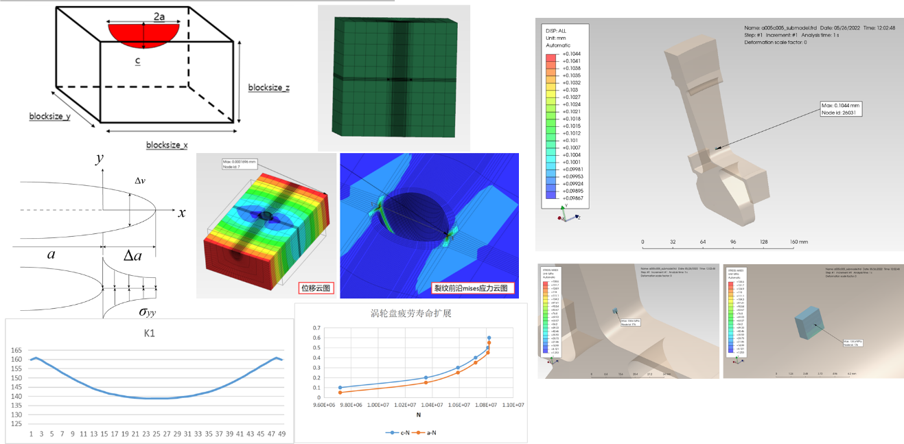 团队长期从事结构疲劳裂纹扩展及全寿命、材料的循环塑性本构理论、材料多尺度力学以及高性能计算固体力学研究,研究成果在航空、航天、在役大型设备评估中得到应用。开发了疲劳寿命分析软件,实现了主要疲劳寿命计算方法,单轴载荷、多轴载荷、比例加载、非比例加载等功能,实现了材料模型统一,疲劳计算和裂纹扩展计算材料模型统一;开发了基于有限元的三维裂纹扩展分析软件开发,实现了典型构件三维裂纹有限元参数化建模技术开发、三维裂纹动态网格更新技术开发、三维线弹性有限元求解技术开发、三维裂纹动态扩展技术开发。通过三维裂纹扩展分析软件可以实现典型构件的疲劳裂纹扩展计算。产品成功应用于航空发动机的疲劳损伤容限设计。