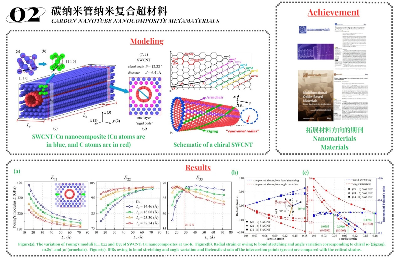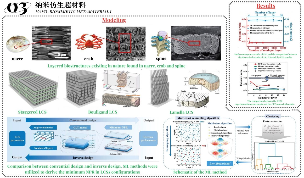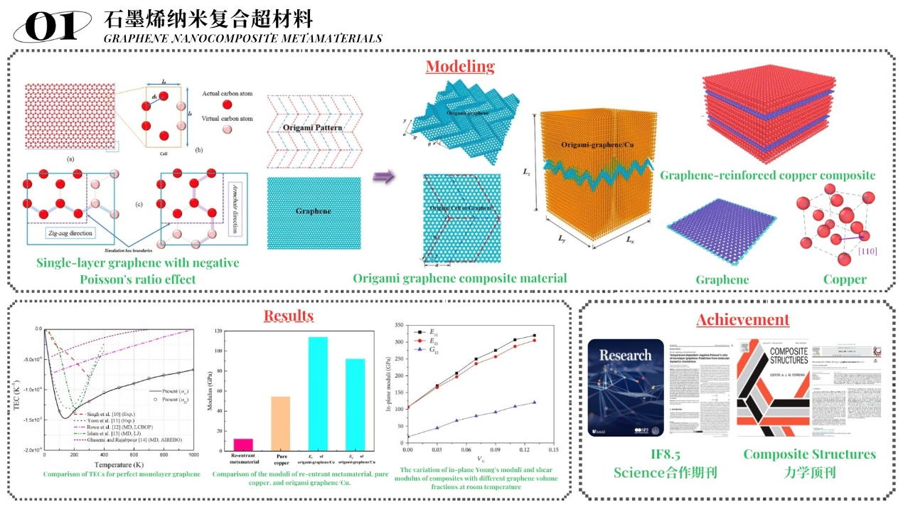 拉胀超材料被视为下一代新材料,在航空航天,医疗,传感器,体育,建筑,机械等领域将会有非常重要的应用。拉胀超材料设计与力学性能评估是团队主要研究方向之一,研究尺度从纳米到厘米,研究方法涵盖数值模拟到试验分析,主要解决超材料的设计优化与新的力学行为模拟。承担了国家自然科学基金项目,上海市自然科学面上项目等科研项目。同时,在该方向与澳大利亚Western Sydney University,韩国Seoul National University,美国Syracuse University建立了良好的合作关系。团队研究成果发表在Research(Science Parter Journal)等顶级期刊,目前,团队致力于将人工智能等新方法应用到该研究方向中。